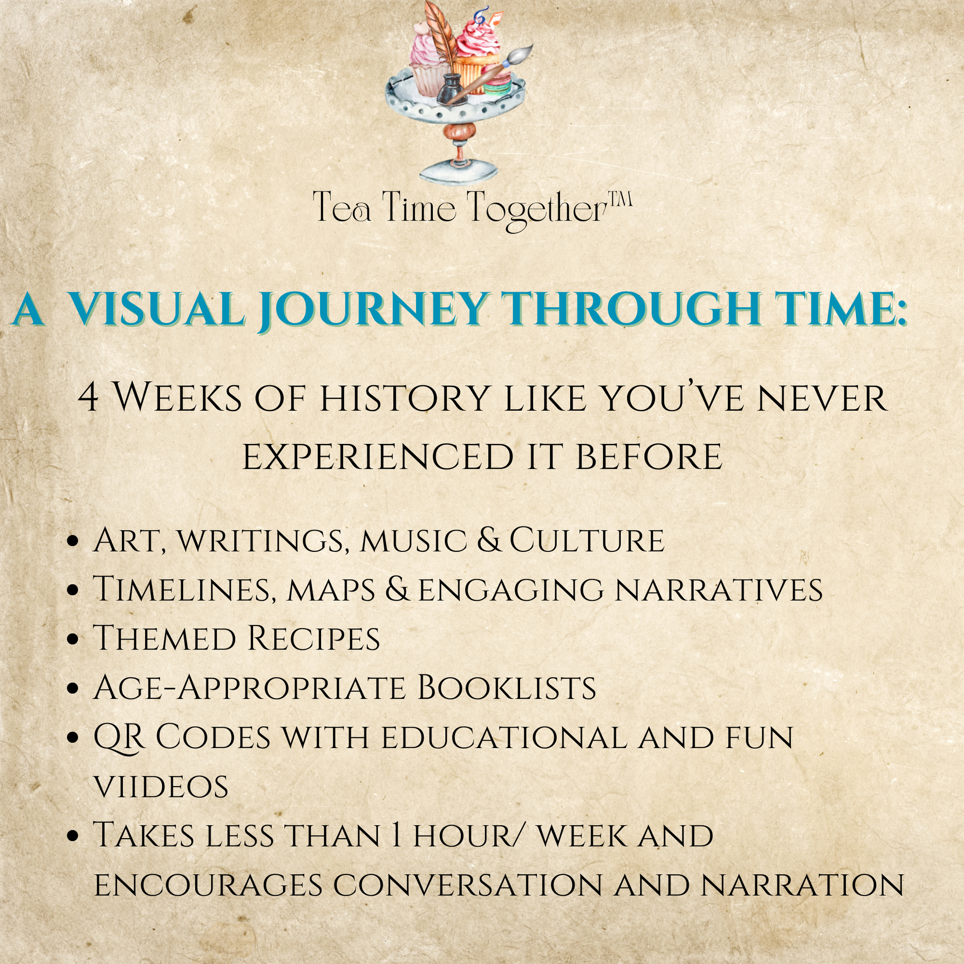 Say goodbye to rote memorization of dates and names and hello to a vibrant exploration of art, literature, and culture. Served over tea and snacks, this curriculum encourages meaningful conversations and connections among family members.