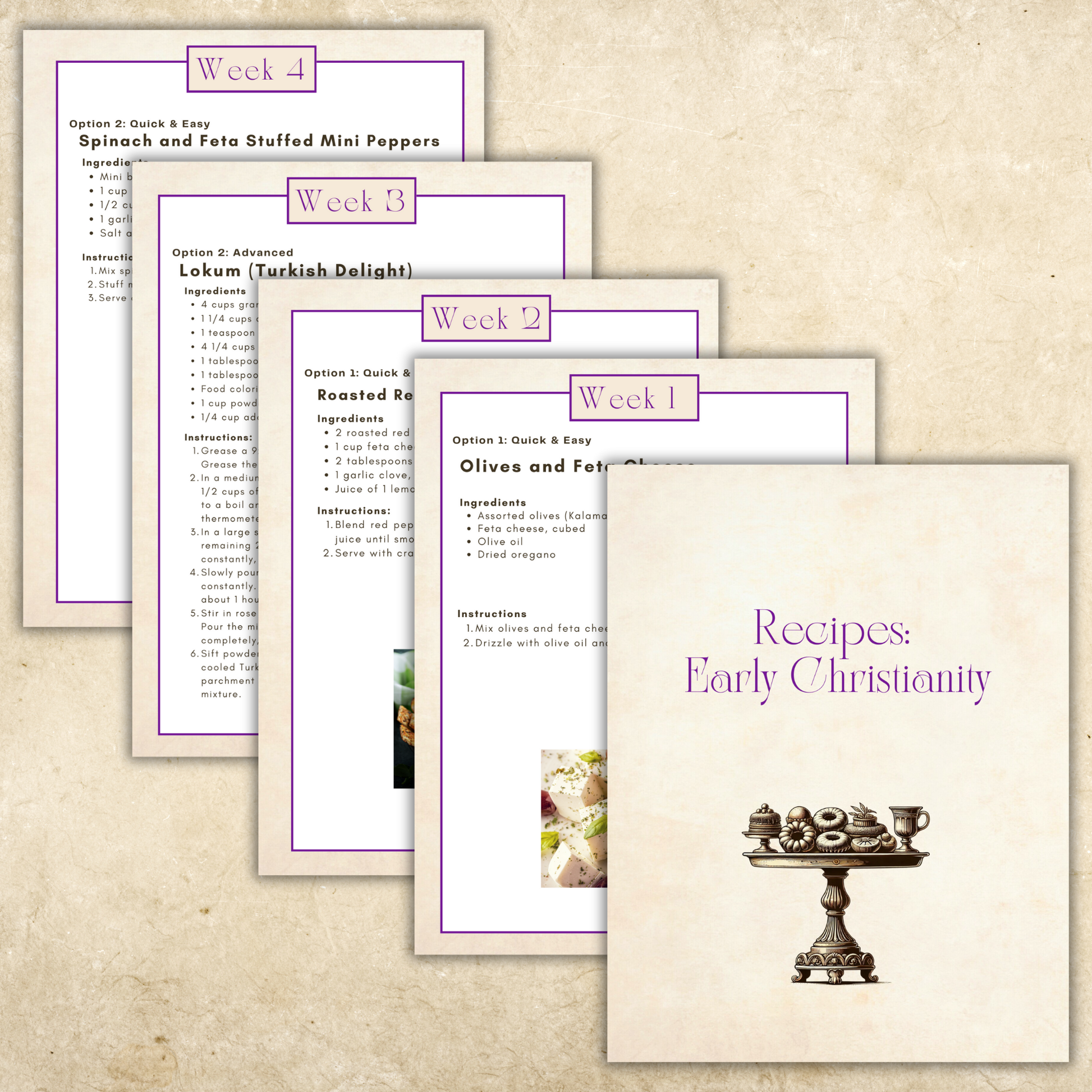- Recipes (optional): You may supplement your lessons with a fun recipe each week. We’ve curated easy and delicious recipes inspired by the very civilization you will study each week!