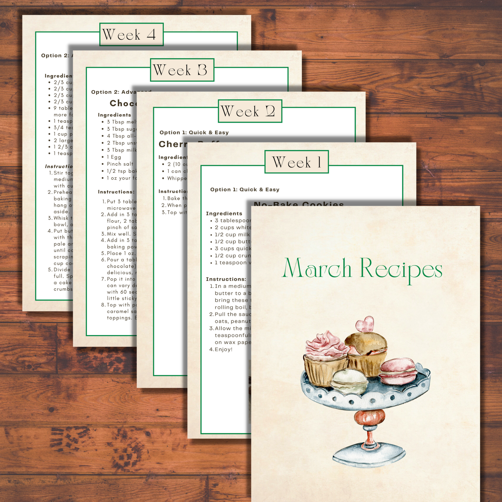 - ‘Recipes’: Weekly recipes with two options each week- Easy and Moderate