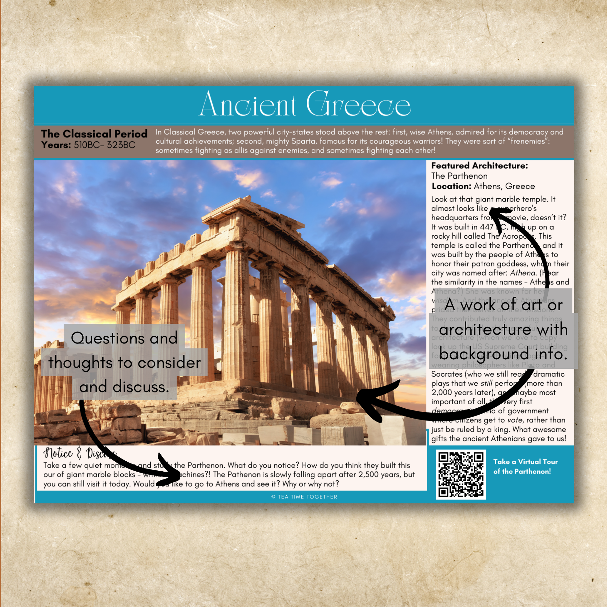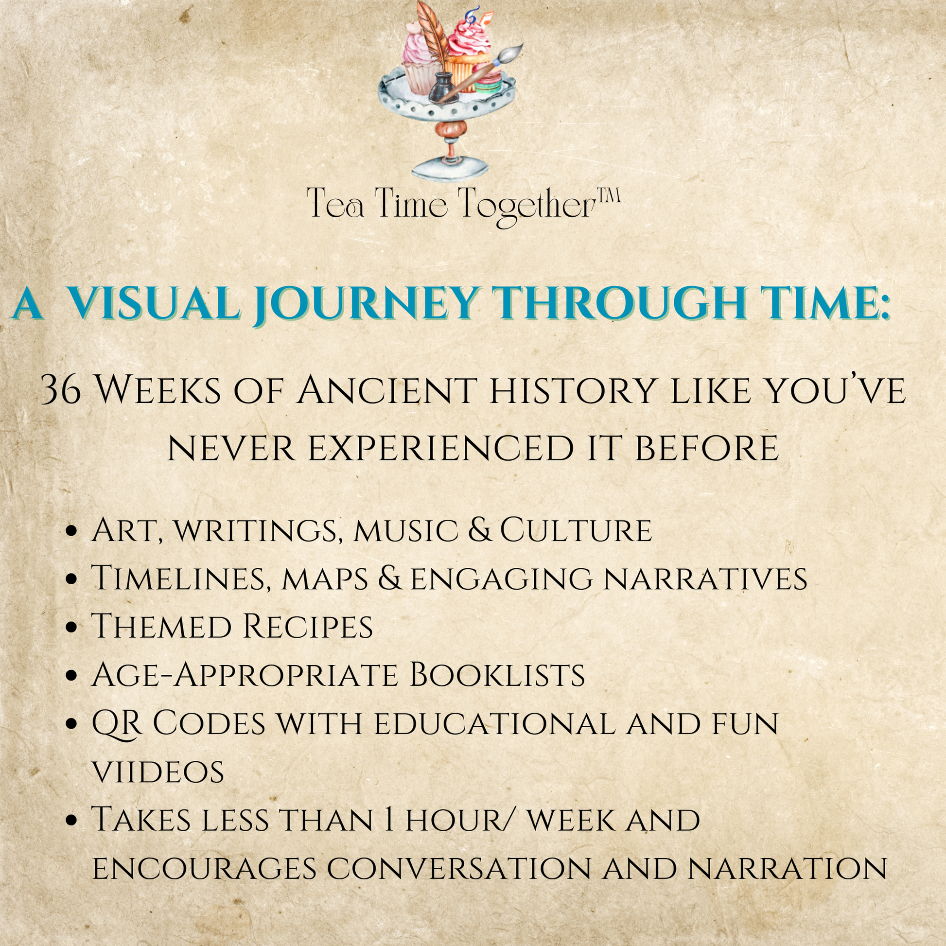 Welcome to Tea Time Together™ History: Ancient Civilizations, a revolutionary new homeschool curriculum designed to make learning history an engaging and enriching experience for the whole family. Say goodbye to rote memorization of dates and names and hello to a vibrant exploration of art, literature, and culture.
